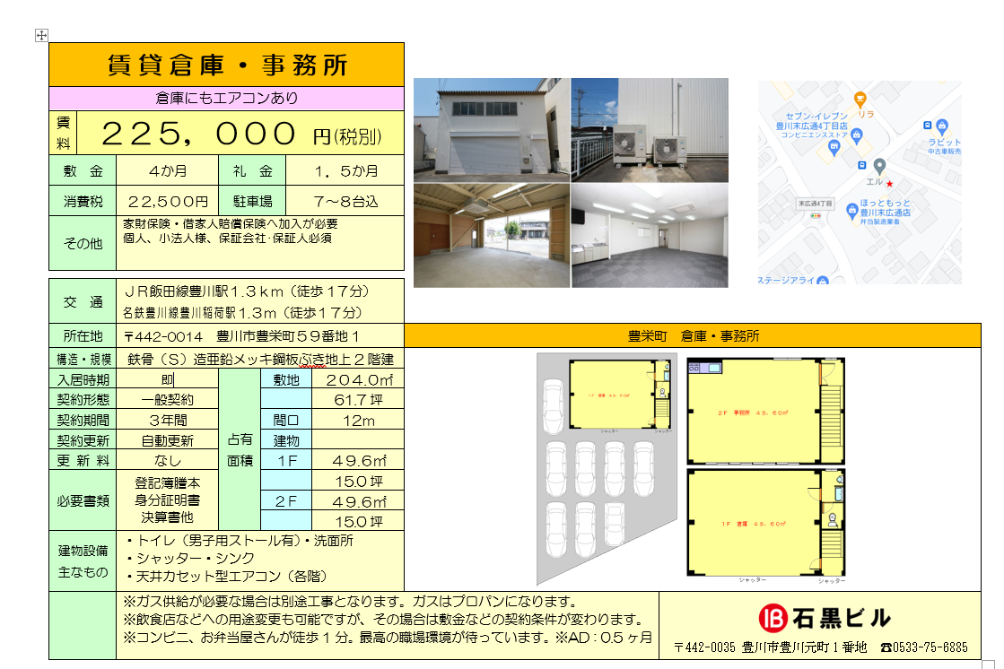 ※空室状況、契約条件等は予告なく変更になる場合があります。申込み前に最新情報を必ずお問合せ下さい。 業種によっては、お断りさせて頂く場合がございます。 ▲PDFファイルをダウンロードする。 ▲PDFファイルをダウンロードする。 ※空室状況、契約条件等は予告なく変更になる場合があります。申込み前に最新情報を必ずお問合せ下さい。 ▲page top へ