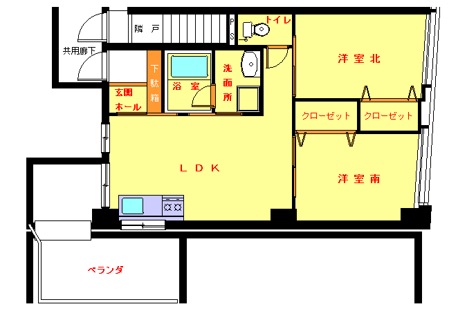 | 室 内 | ベランダ | 合 計 | LDK | 洋 室 北 | 洋 室 南 |