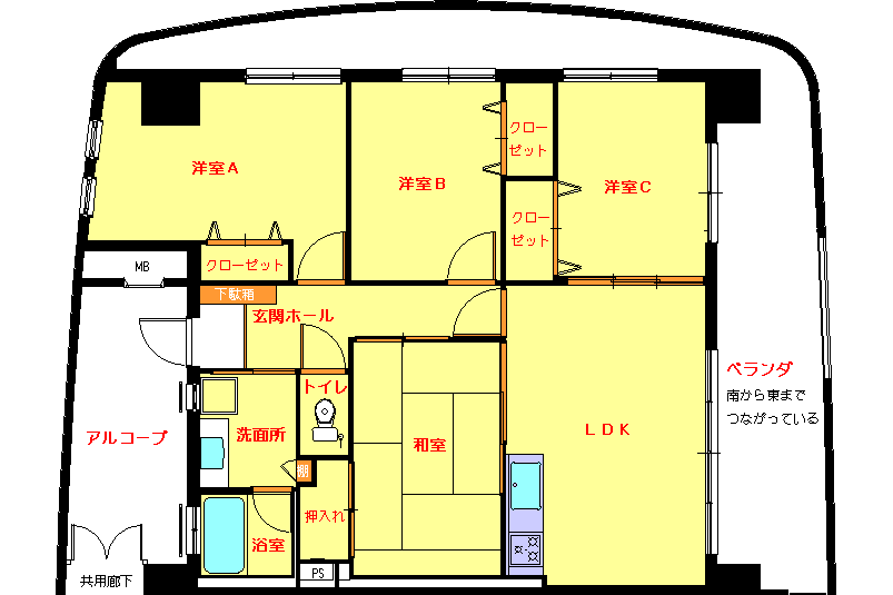 | 室 内 | ベランダ | アルコープ | 合 計 | LDK | 洋 室 A | 洋 室 B | 洋 室 C | 和 室 |